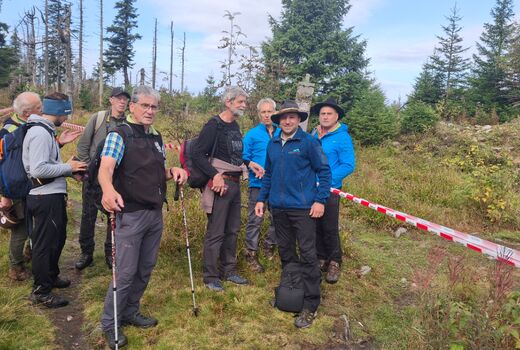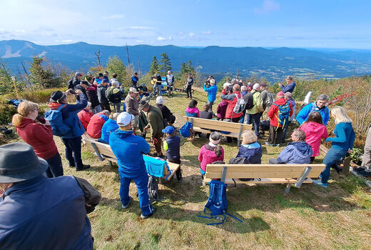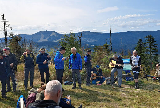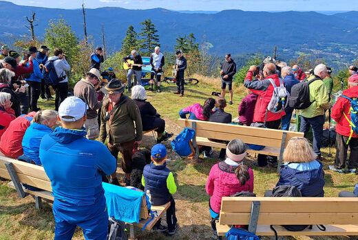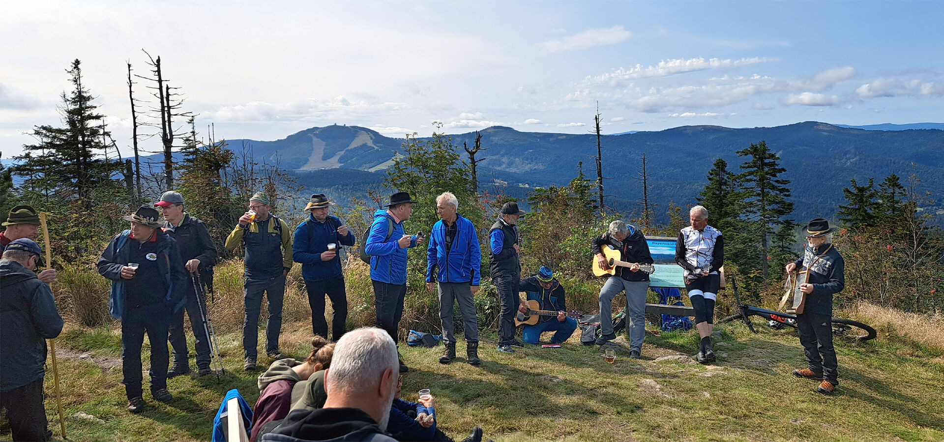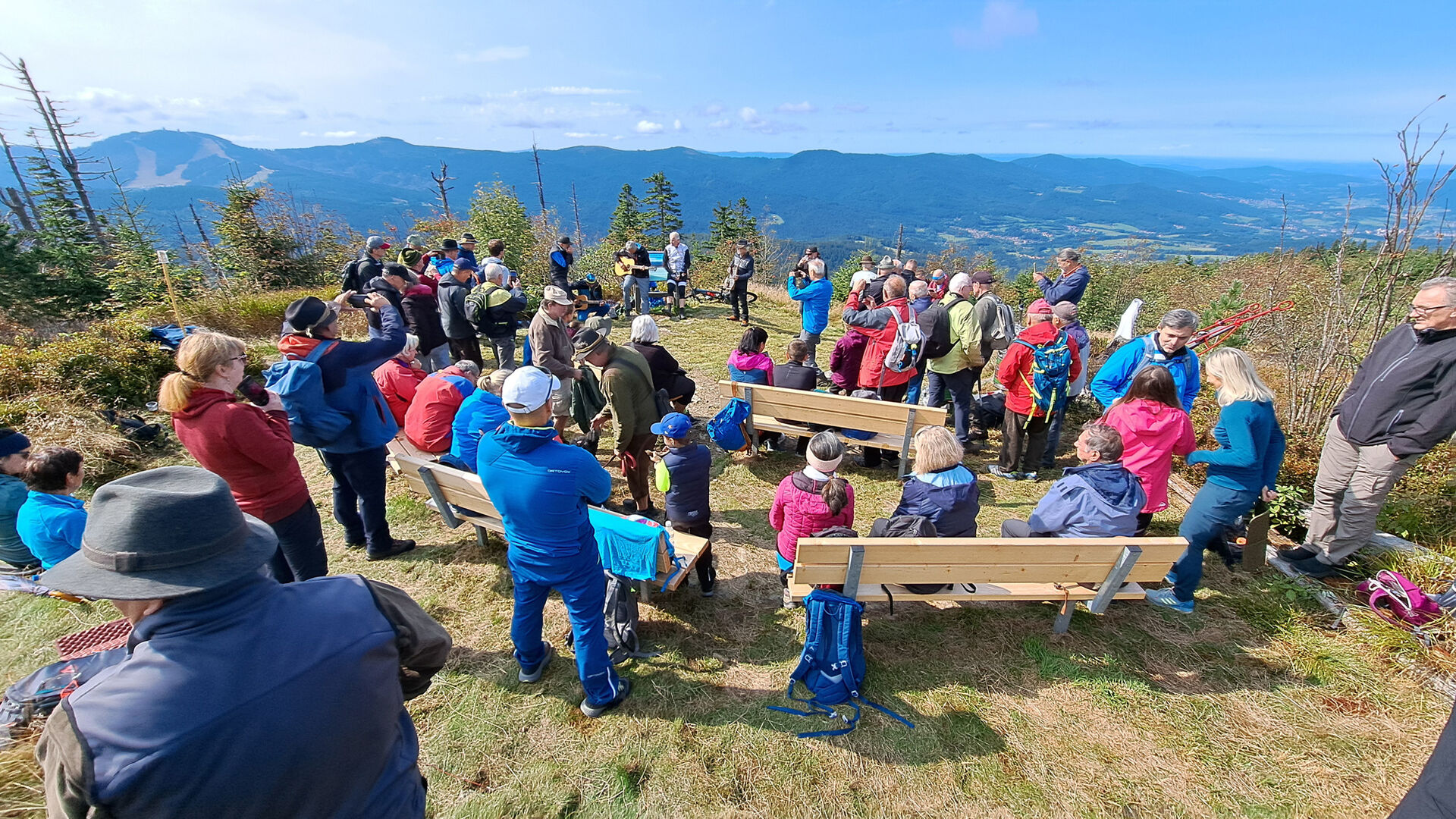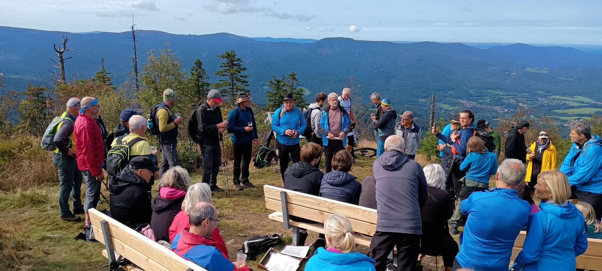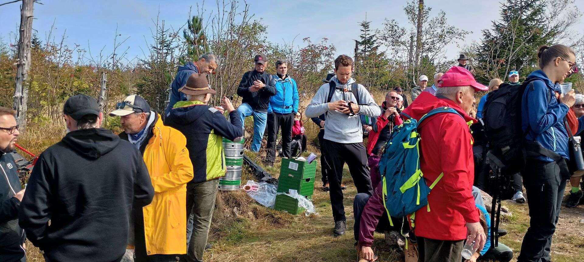 Nach einem Halt bei der ehemaligen Juránek-Hütte, wo an die wechselvolle Geschichte dieses Ortes erinnert wurde, führte die Wanderung weiter zum Naturkino. Dort erwartete die Gäste ein buntes Programm mit Musik, Begegnungen und Bewirtung inmitten der herrlichen Landschaft des Böhmerwaldes und Bayerischen Waldes.