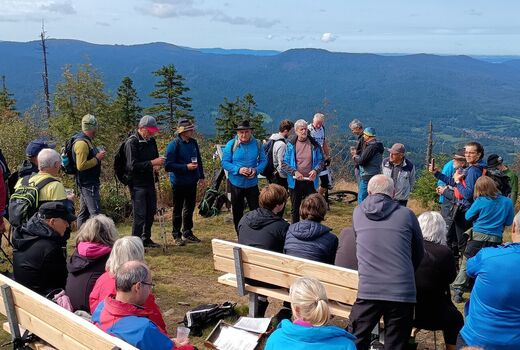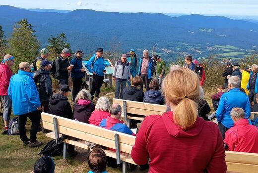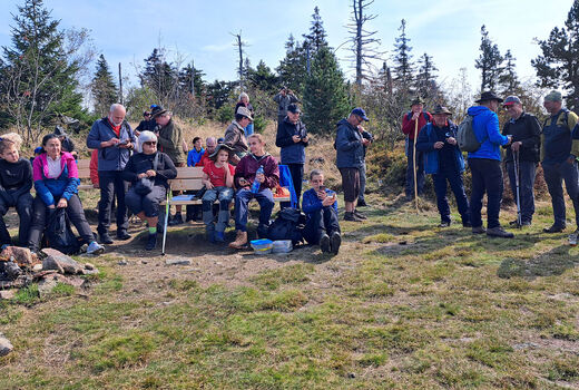 Zahlreiche Teilnehmerinnen und Teilnehmer aus beiden Ländern machten sich vom Parkplatz Scheiben aus gemeinsam auf den Weg entlang des Wanderwegs Lo5.