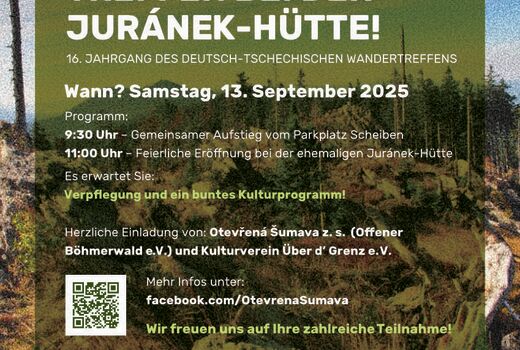 Der Verein Otevřená Šumava und der Kulturverein Über d’ Grenze e.V. hat am 13. September 2025 zu einem besonderen Deutsch-Tschechisches Treffen bei der Juránek-Hütte eingeladen.