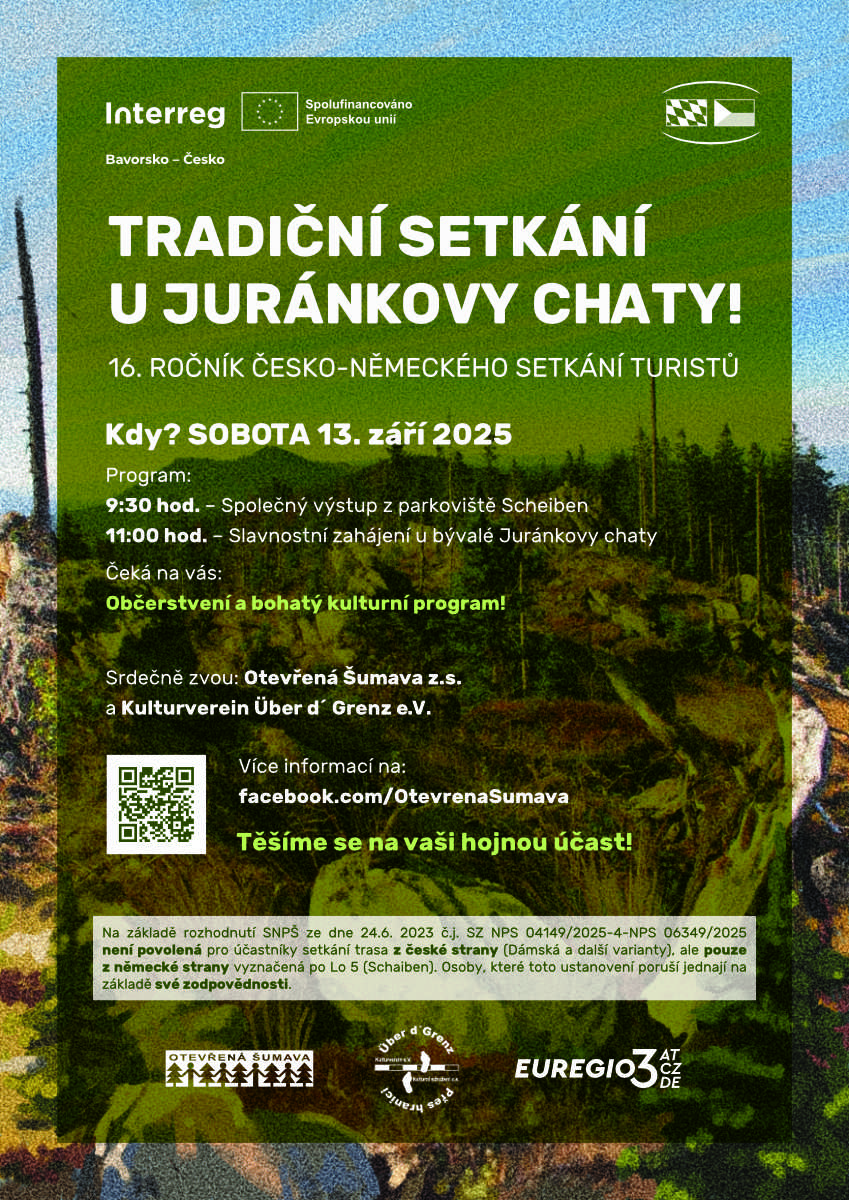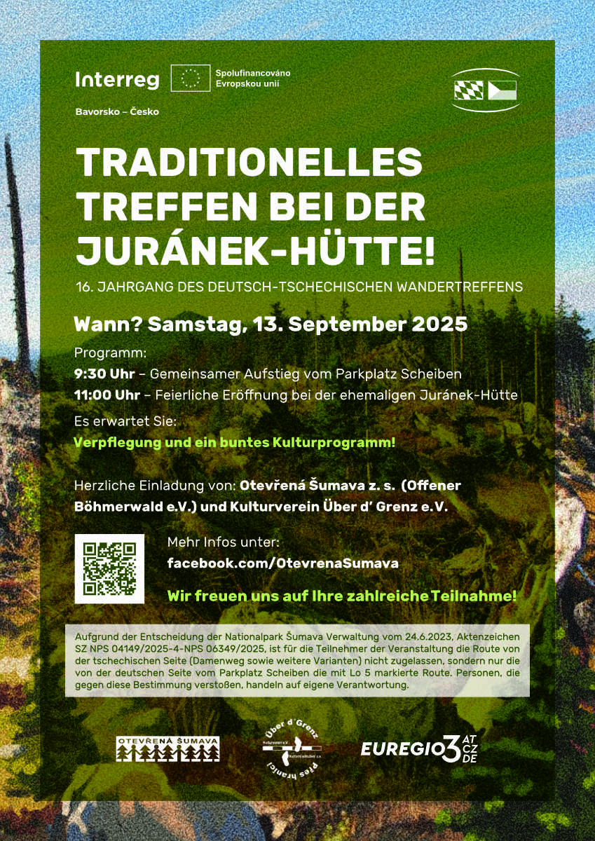 Sdružení Otevřená Šumava a kulturní sdružení Über d’ Grenze e.V. pozvalo 13. září 2025 na speciální česko-německé setkání u Juránekovy chaty.